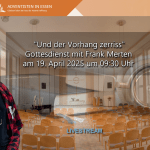 26. April 20252. Mai 2025 JKM Gefällt mir:Gefällt mir Wird geladen … Ähnliche Beiträge Post navigation ← „Und der Vorhang zerriss“ Gottesdienst mit Frank Merten am 19. April 2025 „Tod und dennoch Hoffnung!“ Gottesdienst mit Gerd Kuhlmann am 26. April 2025 →