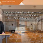 7. April 202617. April 2026 JKM Gefällt mir:Gefällt mir Wird geladen … Ähnliche Beiträge Post navigation ← „Lasst uns nach Bethel gehen“ Gottesdienst mit Bogdan Scholtyssek am 28. März 2026 „Frühling ist wenn Gott alles neu macht“ Gottesdienst mit Lina Bammann am 11.April →